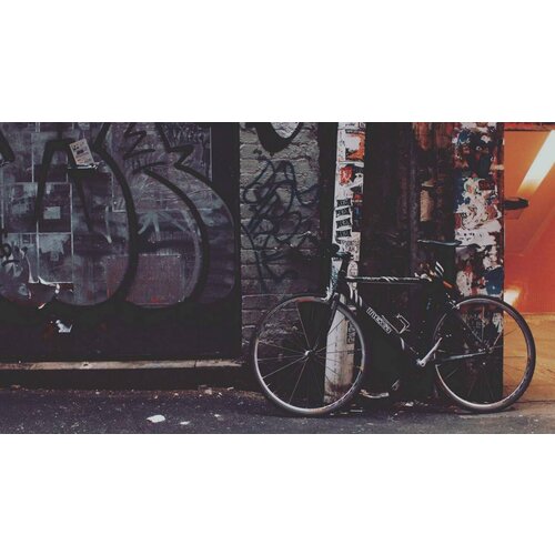 Картина на холсте 60x80 LinxOne "Велосипед, двор, граффити" интерьер для дома / декор на стену / дизайн