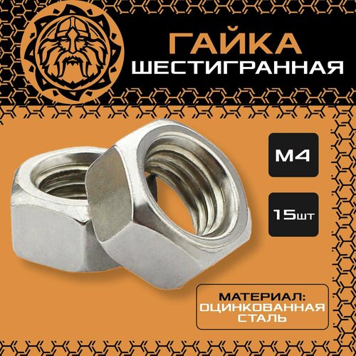 Гайка шестигранная М4 (15шт.), оцинкованная, DIN934