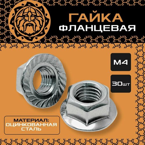 Гайка с фланцем М4 (30шт.) оцинкованная, DIN6923