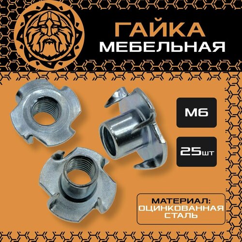 Гайка мебельная М6 (25шт.) оцинкованная, DIN1624