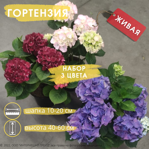 Гортензия в горшке 3 цвета голубая, синяя, розовая, красная подходит как домашняя и уличная в открытый грунт, оптом от магазина Купить Цветы