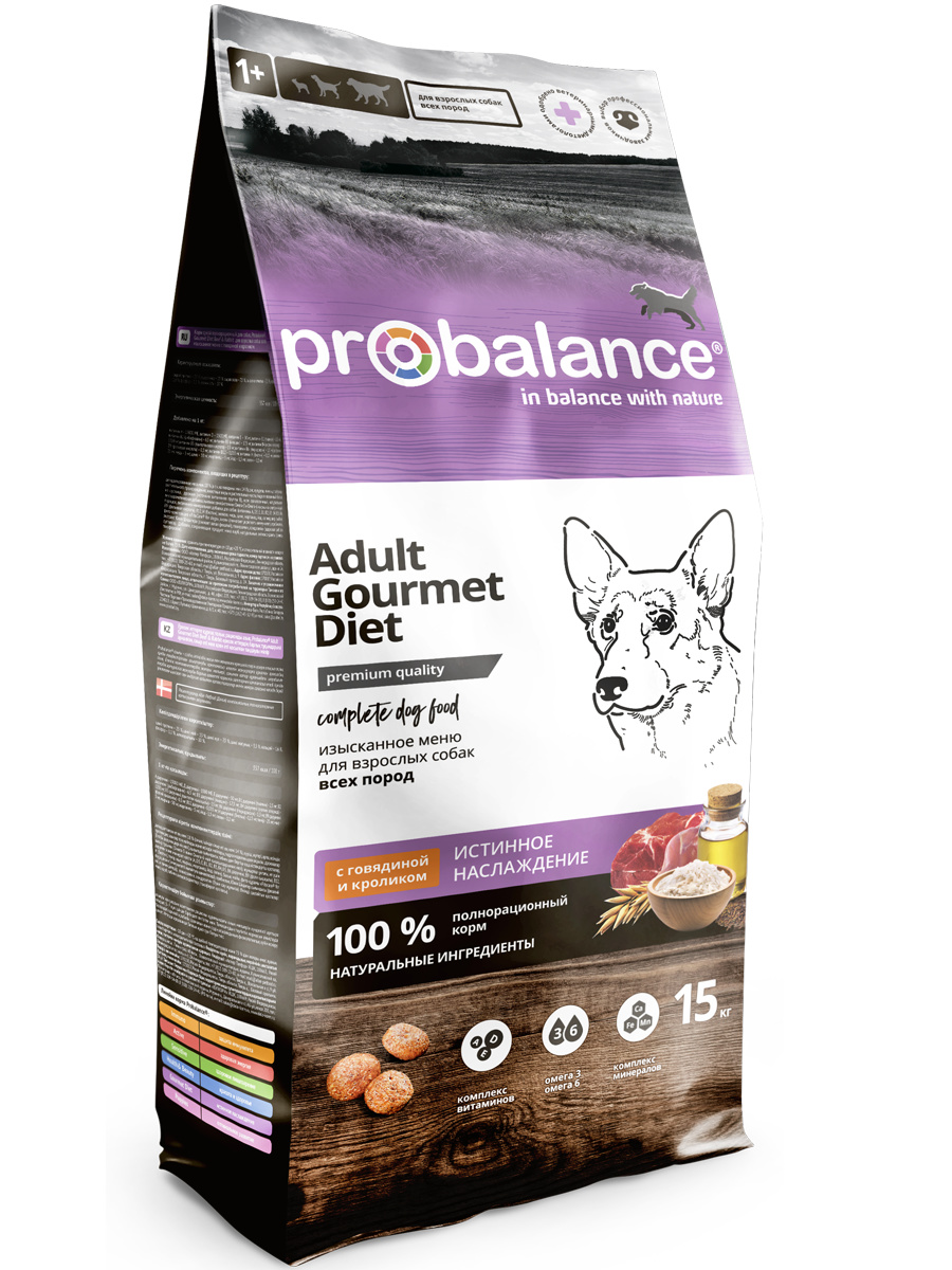 Probalance Корм Probalance для взрослых собак всех пород, с говядиной и кроликом, изысканное меню (15 кг)