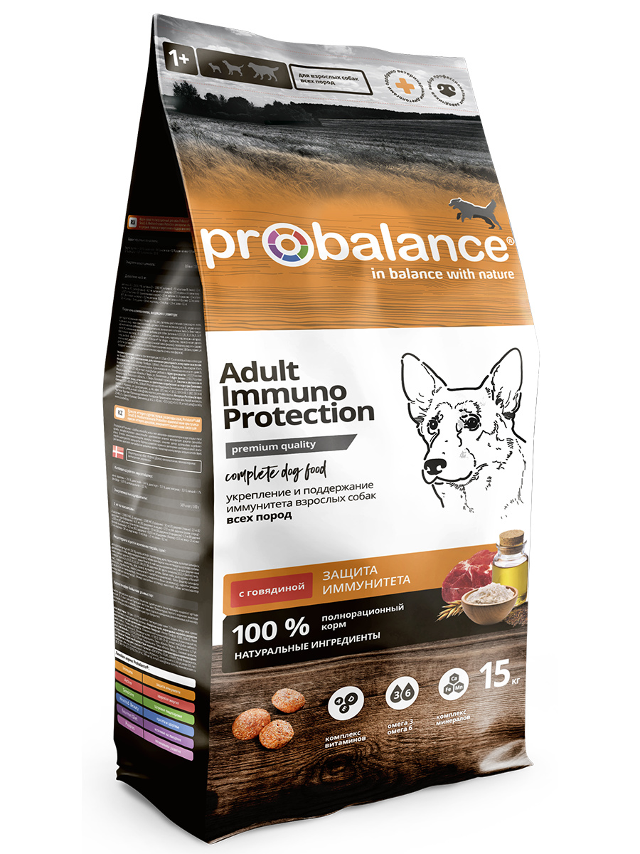 Probalance Корм Probalance для взрослых собак всех пород, укрепление и поддержание иммунитета, с говядиной (15 кг)