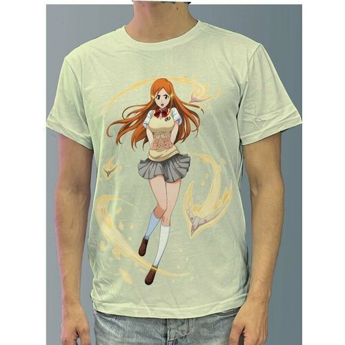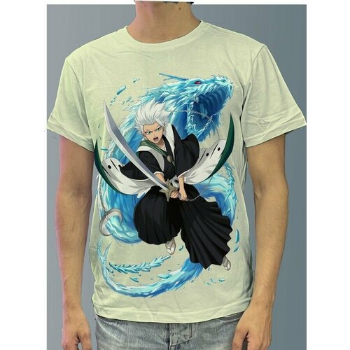 Футболка мужская белая молочный оттенок из хлопка с DTF принтом Bleach Аниме - 636