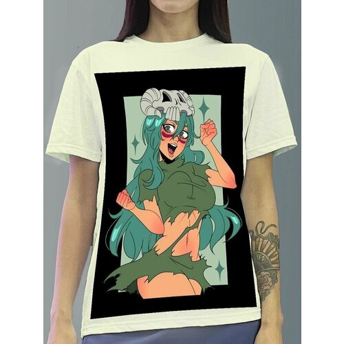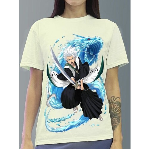 Футболка женская белая молочный оттенок из хлопка с DTF принтом Bleach Аниме - 292