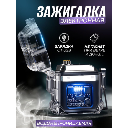 Зажигалка электронная аккумуляторная Огонь / Водонепроницаемая / Плазменная зажигалка с зарядкой Type-C, С фонариком