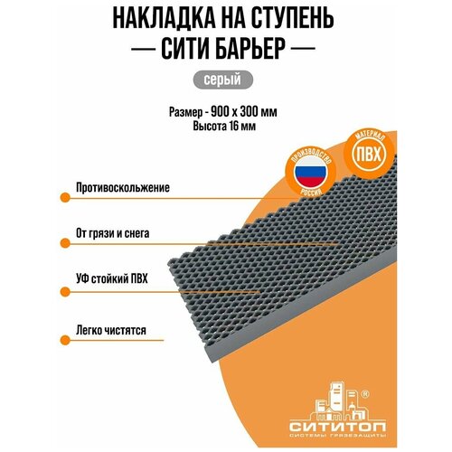 Накладка на ступень СитиТоп "Сити Барьер 16" 300х900х16 мм, серая