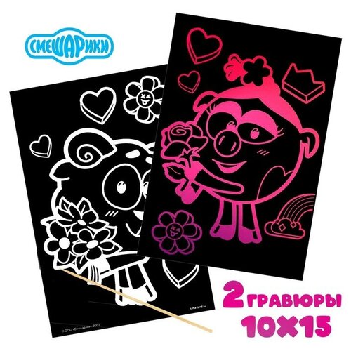 Гравюра Смешарики: Бараш и Нюша с цветной основой, набор 2 шт А6
