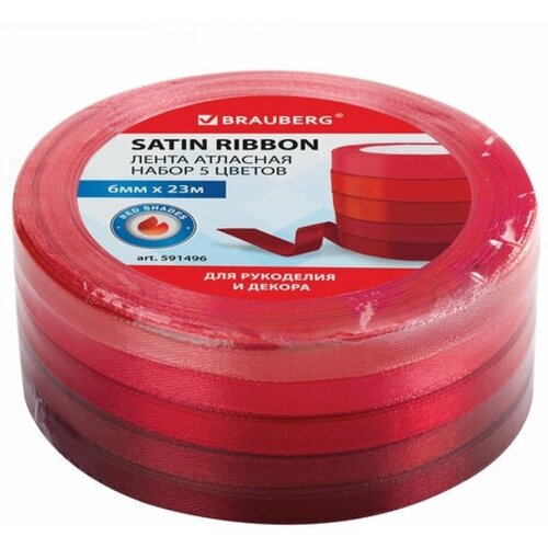 Лента атласная ширина 6 мм, красный спектр набор 5 цветов по 23 м, BRAUBERG