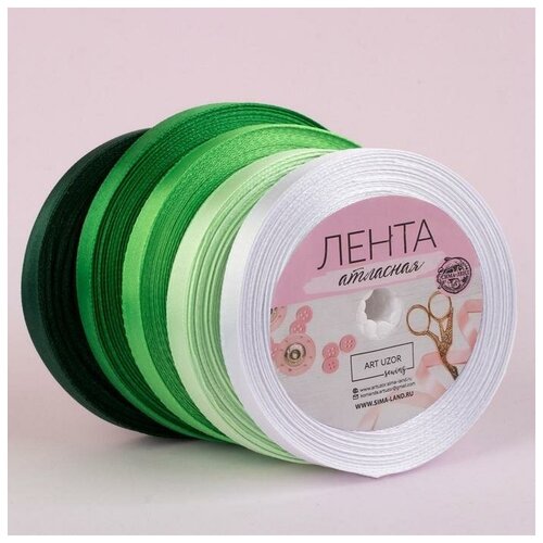 Набор атласных лент, 5 шт, размер 1 ленты: 10 мм × 23 ± 1 м, цвет зелёный спектр