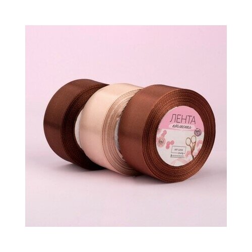 Набор атласных лент, комплект 3 шт, 3 шт, размер 1 ленты: 40 мм × 23 ± 1 м, цвет коричневый спектр, Арт Узор