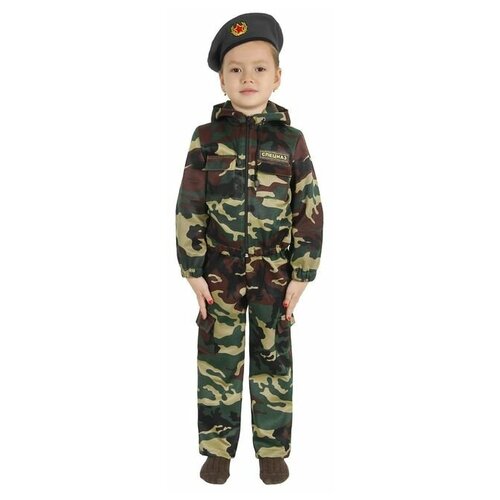 Карнавальный костюм "Спецназ", куртка с капюшоном, брюки, берет, рост 128 см