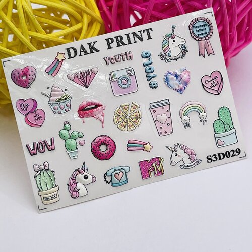 Объемные 3D cтикеры для маникюра (самоклеящиеся слайдеры) для дизайна ногтей "Единорог"