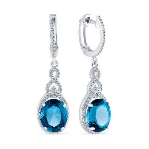 Серьги Стрекоза,капли серебряные позолоченные с топазом и фианитами (серебро 925 пробы, позолота)
