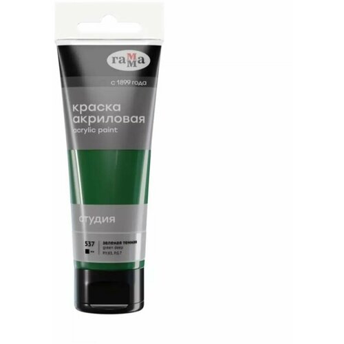 Краска акриловая художественная Гамма "Студия" зеленая темная, 75мл