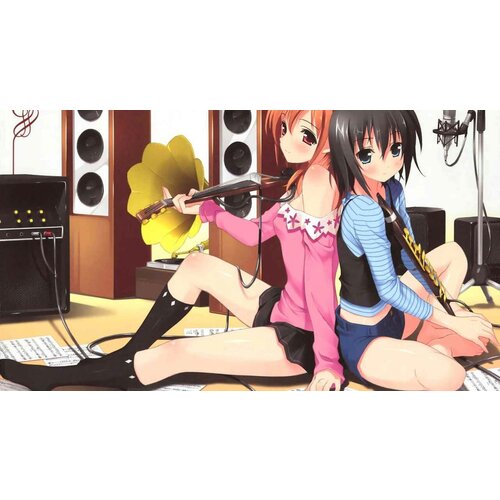 Постер на экокоже 60x110 LinxOne "Девушки, кавай, студия, ноты" интерьер для дома / декор на стену / дизайн