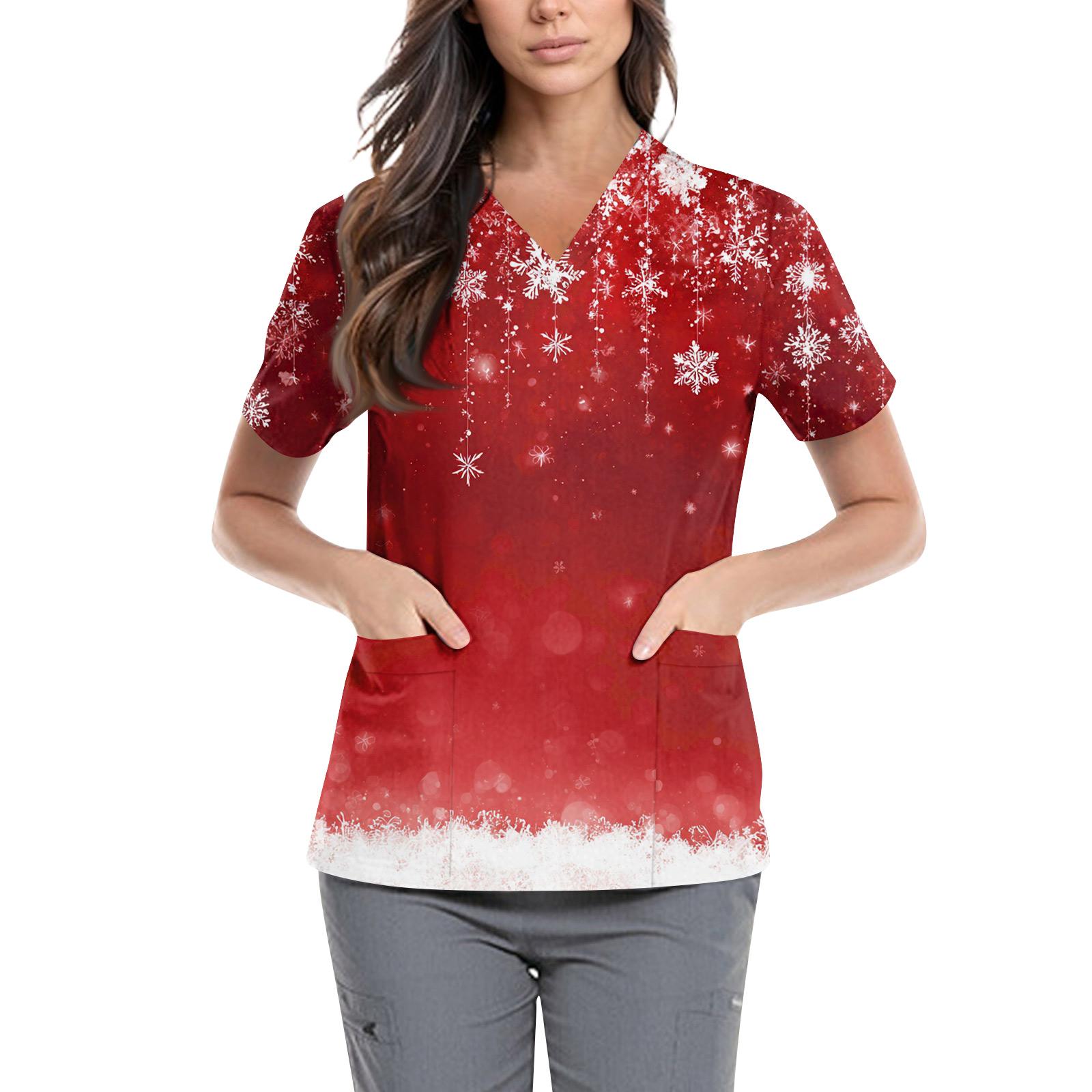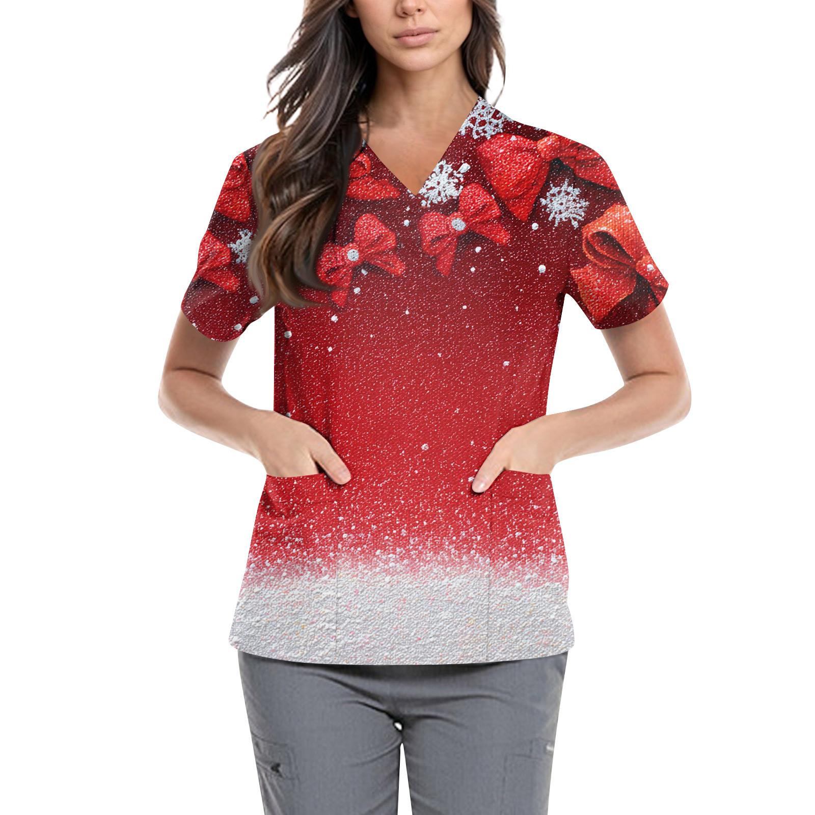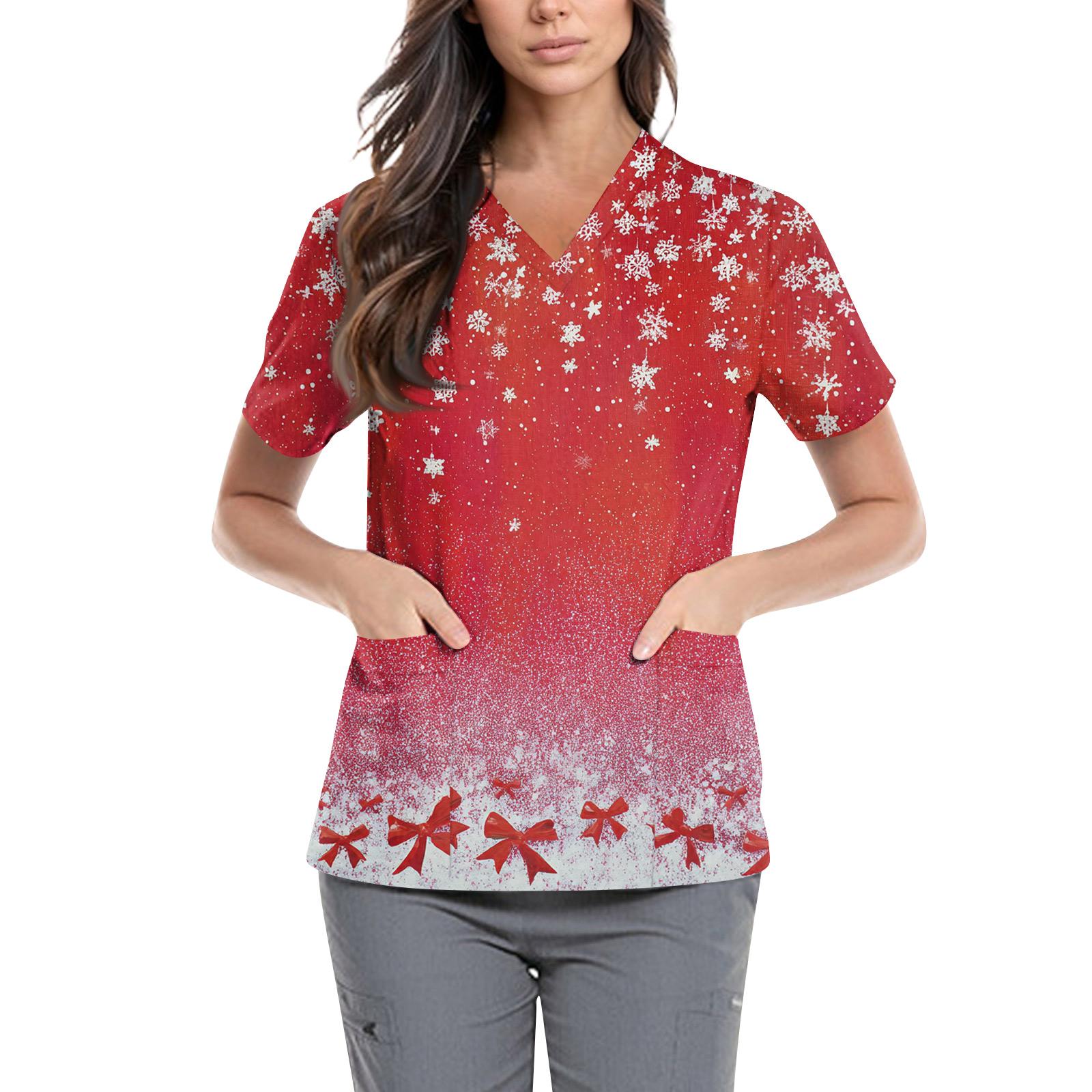Женская симпатичная принтованная рабочая одежда с V-образным вырезом, двухслойными карманами, базовым коротким рукавом, пуловером ко Дню святого Валентина XXXXXL