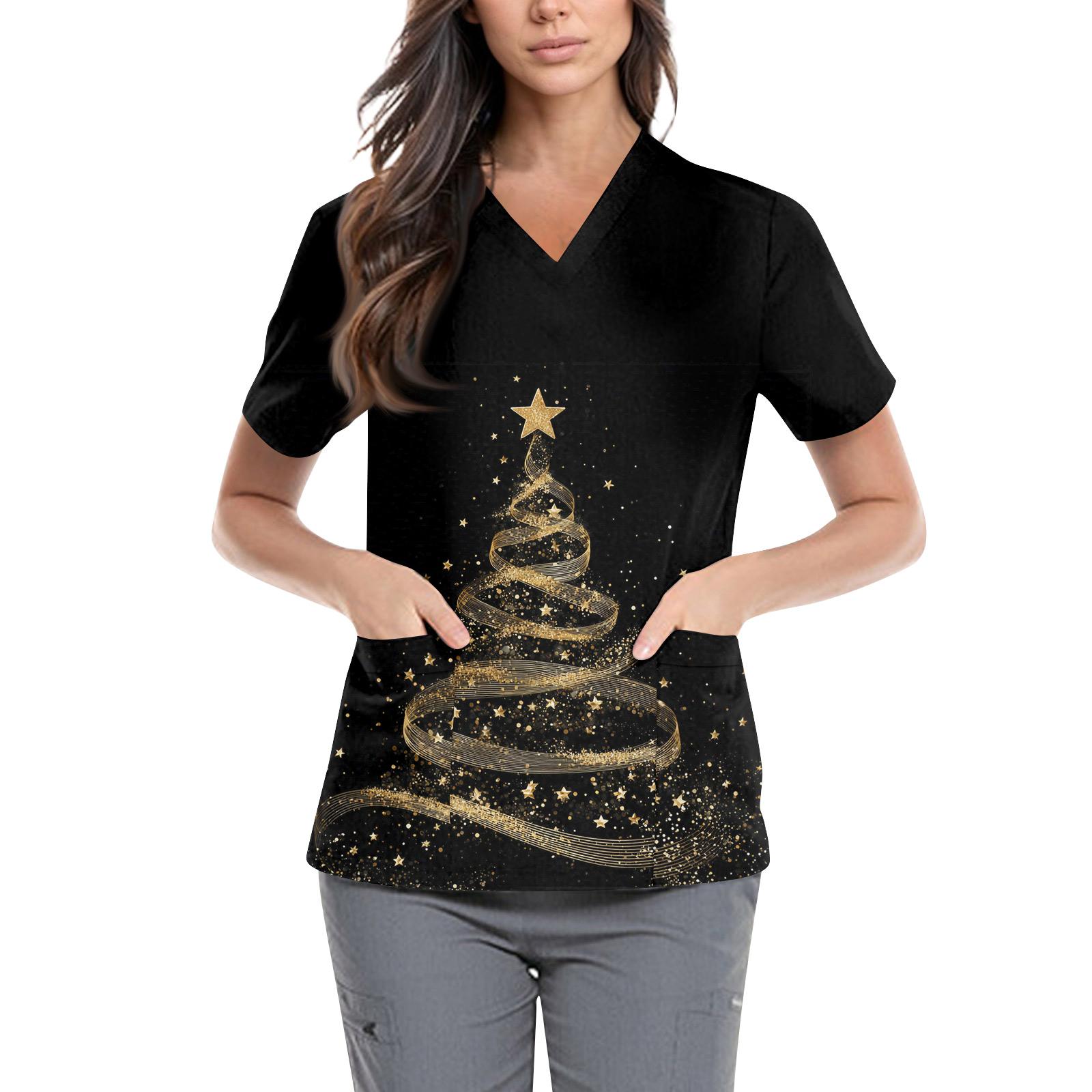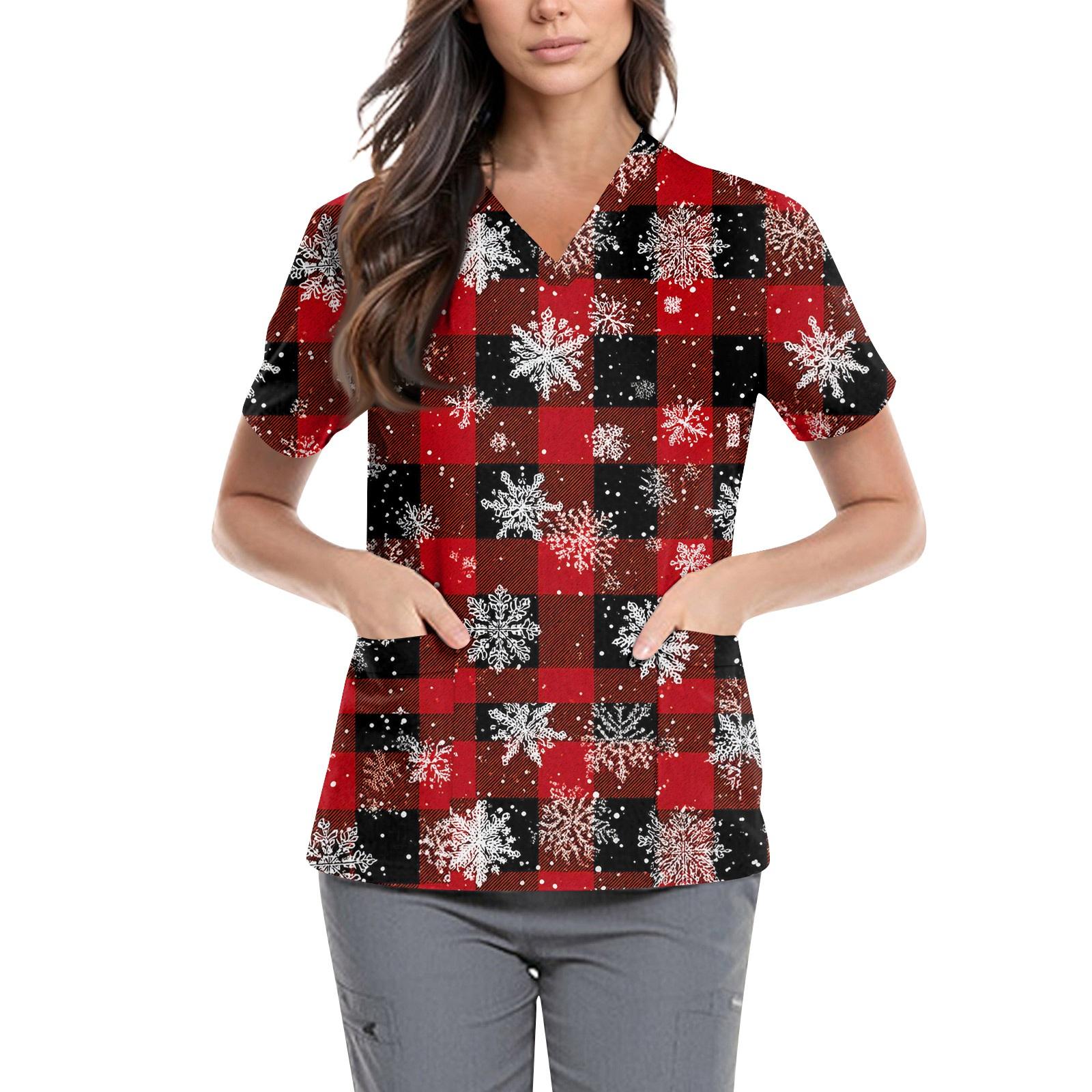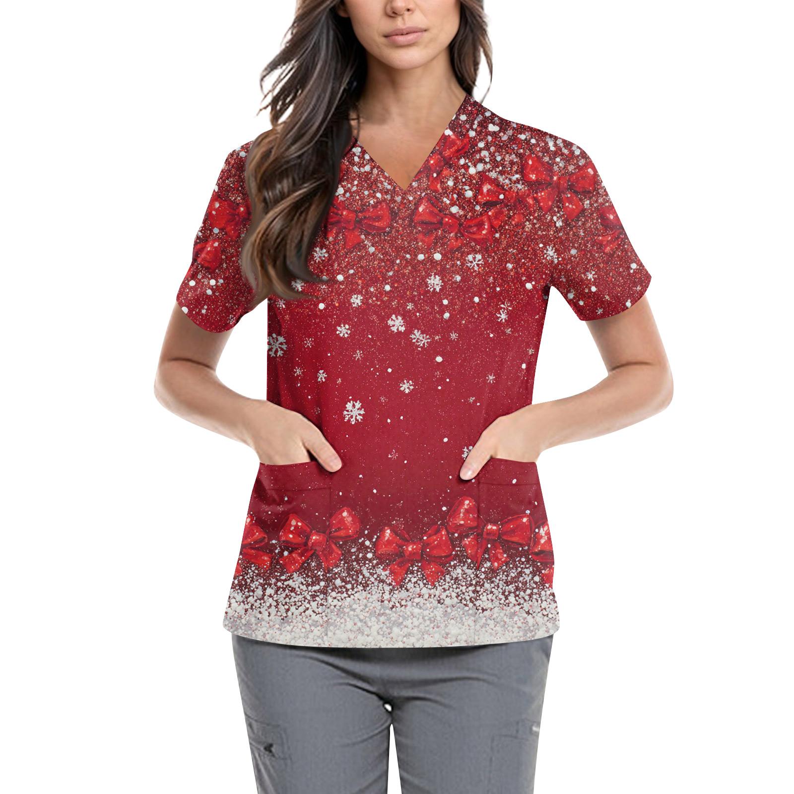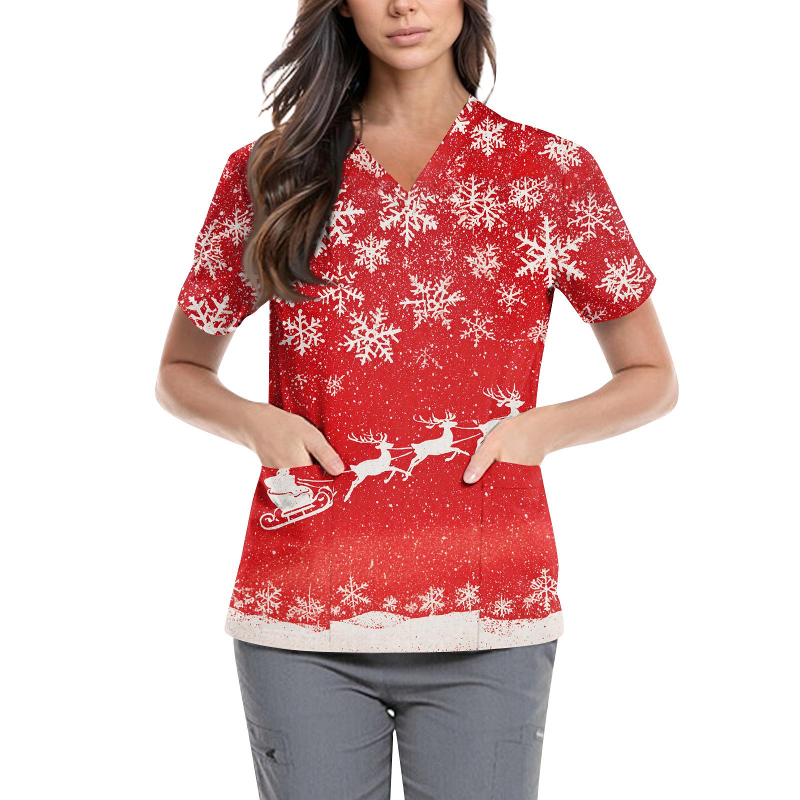 Женская симпатичная принтованная рабочая одежда с V-образным вырезом, двухслойными карманами, базовым коротким рукавом, пуловером ко Дню святого Валентина XXXXXL