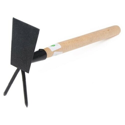 Мотыжка комбинированная, длина 35 см, 2 зубца, деревянная ручка