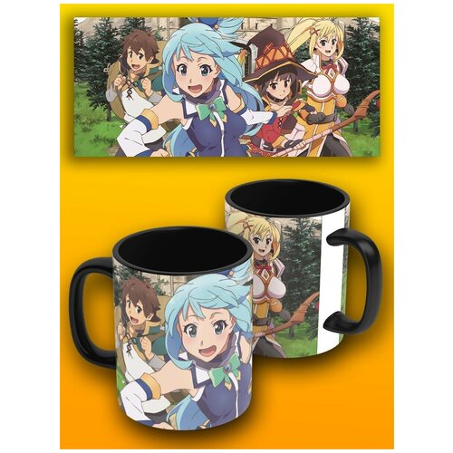 Кружка черная аниме коносуба этот прекрасный мир (мегумин, аква, сато, даркнесс) - 10369