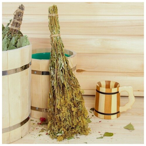 Веник для бани Добропаровъ 45 -5 см травяной из таволги, в индивидуальной упаковке