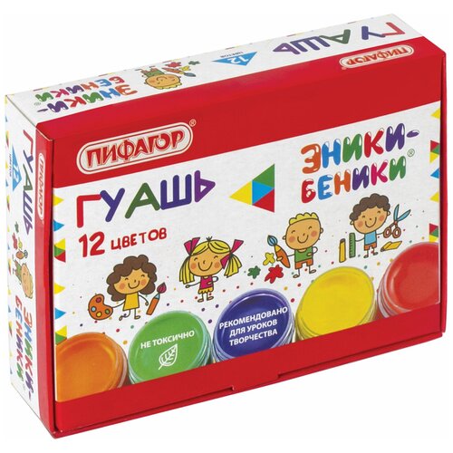 Гуашь 12 цветов по 15 мл Гамма Мультики, блок-тара, картонная упаковка 100222-12
