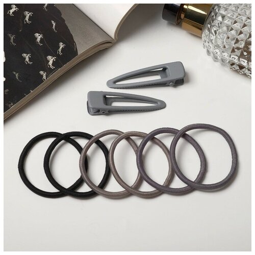Набор для волос "Лиора" (7 резинок, 2 невидимка 5 см) классика, чёрно-серый
