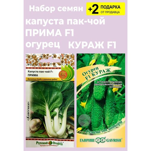 Семена Капуста пак-чой "Прима F1", 0,2 гр. + Семена Огурец "Кураж F1" + 2 Подарка от продавца