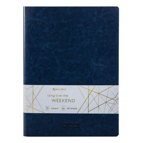 Тетрадь 60 л. в клетку обложка гладкий кожзам, комплект 5 шт, сшивка, B5 (179х250мм), темно-синий, BRAUBERG VIVA, 403897
