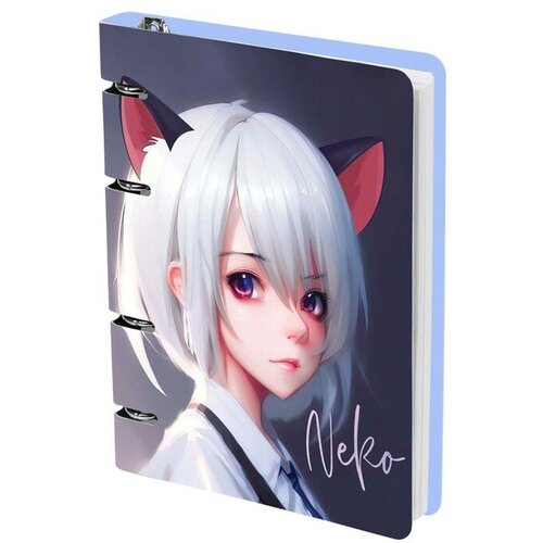 MESHU Тетрадь на кольцах А5, 100 листов в клетку MESHU Neko, обложка мелованный картон, матовая ламинация, тиснение фольгой