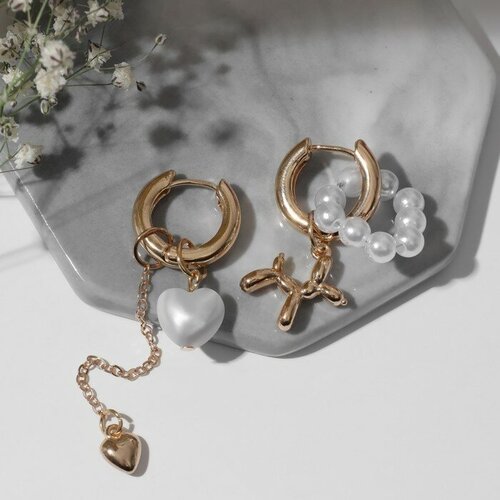 Queen fair Серьги со съёмным элементом "Трансформер" собачка, цвет белый в золоте