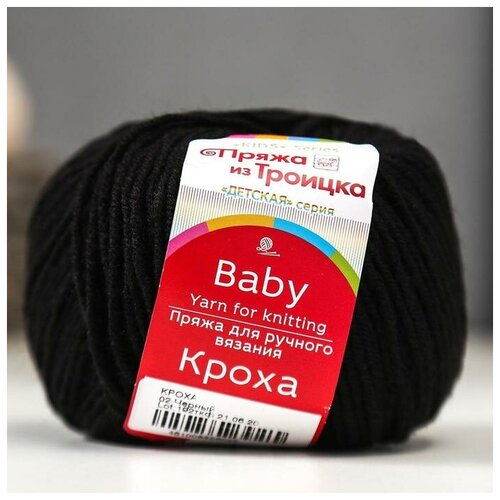 Пряжа Кроха 20% шерсть, 80% акрил 135м/50гр (02-черный)