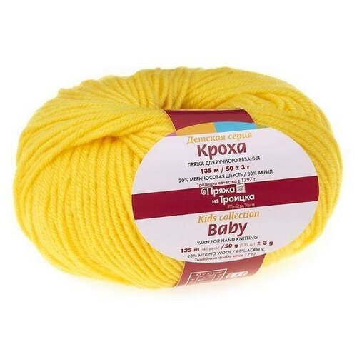 Пряжа из Троицка Кроха, 135 метров, 10 мотков по 50 грамм, цвет: 64 светлый лимон (количество товаров в комплекте: 10)