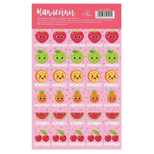 Бумажные наклейки оценки "Ягодки", 10,5 х 18 см
