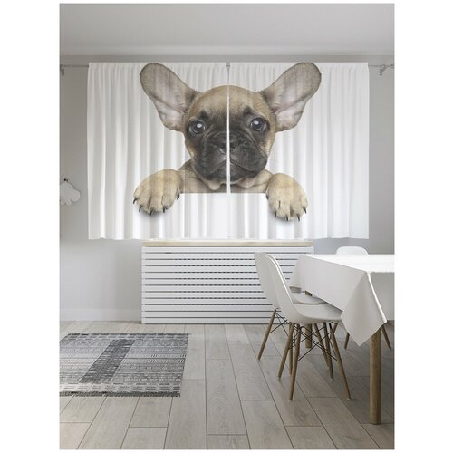 Шторы JoyArty с фотопечатью "Ушастый щенок" из сатена, 290х180 см