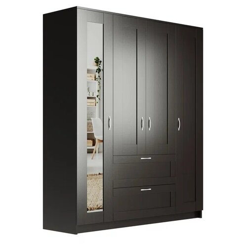 Шкаф сириус, 4 двери и 2 ящика с зеркалами, 156х50х190см, бежевый, Дуб Сонома, Шведский Стандарт