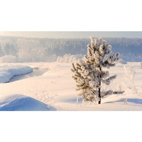 Постер на экокоже 60x80 LinxOne "Река урал снег зима природа" интерьер для дома / декор на стену / дизайн