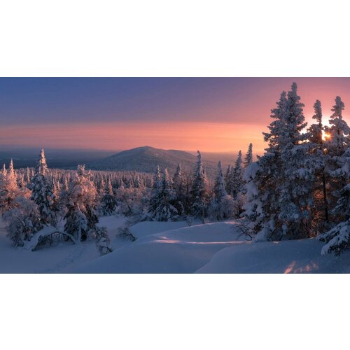 Постер на экокоже 60x90 LinxOne "Природа россия лес урал зима" интерьер для дома / декор на стену / дизайн