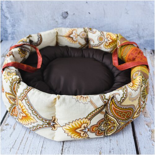 Лежак-корзинка для животных FISSA, коллекция "Восток", модель СВ-101, 43х43 см (мягкая лежанка для кошек и маленьких собачек)