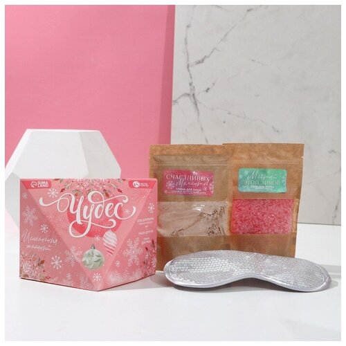 Набор "Чудес!": соль для ванны 100 г, аромат нежная лаванда, розовая глина для лица 50 г, маска для сна