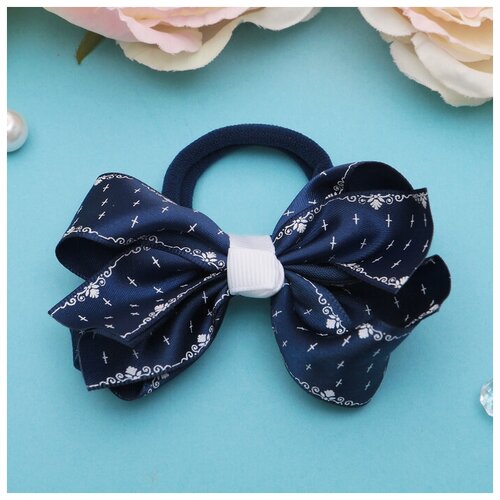 Market-Space Резинка для волос бант "Школьница" d-7 см, синяя, узорный контур