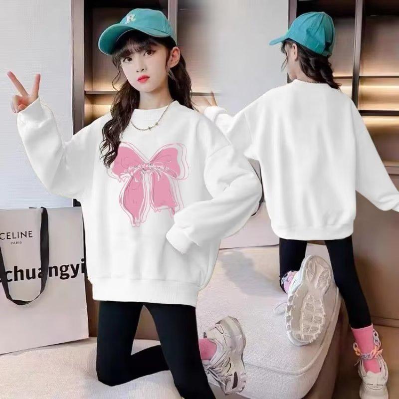 Трендовая свободная толстовка с длинным рукавом для девочек - новый весенне-осенний стиль, пуловер с круглым вырезом для детей 120 cm