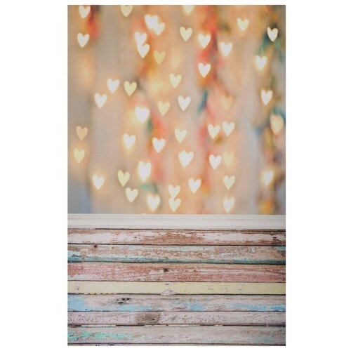 Фотофон винил Светящиеся сердца стена+пол 80х125 см