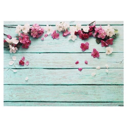 Фотофон винил Белые и розовые цветы на голубых досках 80х125 см