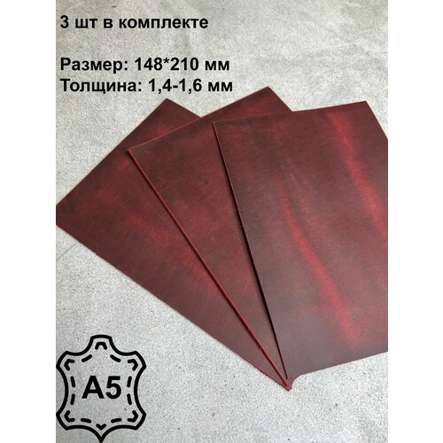 Натуральная кожа 3 листа, Крейзи хорс красный, Кожа для рукоделия, Crazy Horse, А5, 3 шт в комплекте