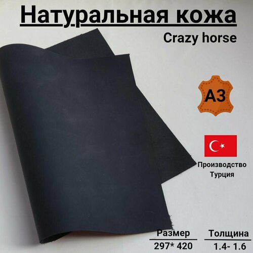 Кожа натуральная Крейзи Хорс. Цвет чёрный, Crazy Horse, формат А3