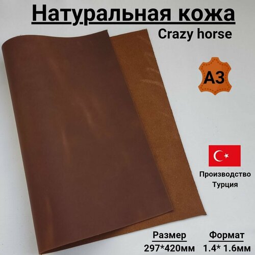 Кожа натуральная Крейзи Хорс. Цвет каштан, Crazy Horse, формат А3