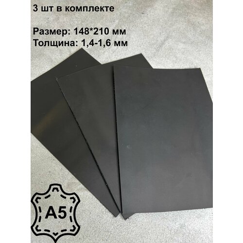 Натуральная кожа 3 листа, Крейзи хорс черный матовый, Кожа для рукоделия, Crazy Horse, А5, 3 шт в комплекте