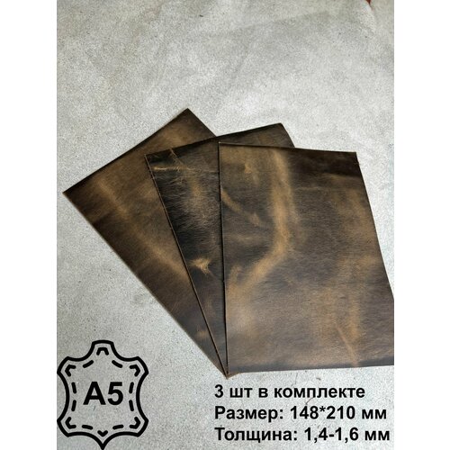 Натуральная кожа 3 листа, Крейзи хорс коричневый, Кожа для рукоделия, Crazy Horse, А5, 3 шт в комплекте