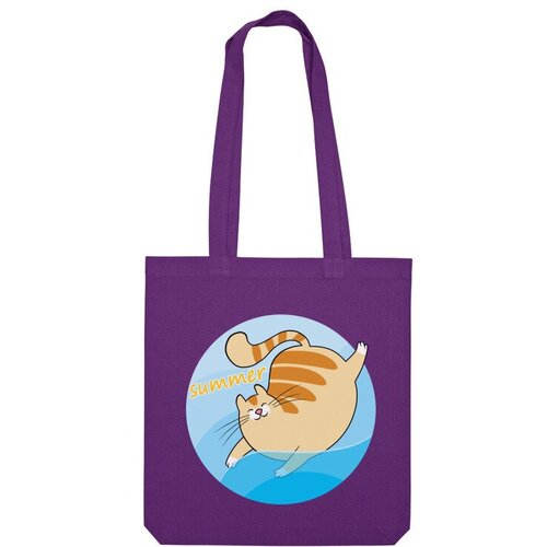 Сумка «Счастливый кот купается в море(океане, реке, воде)» (фиолетовый)